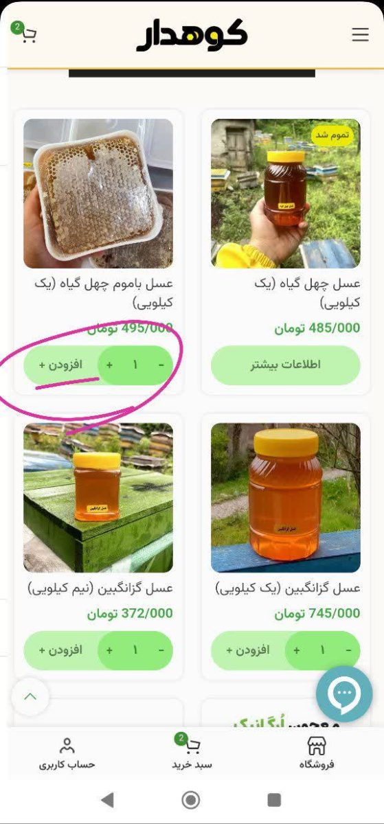 طبق تصویر شماره یک، شما محصولات رو می بیند و زیر هر محصول می تونید با زدن مثبت یا منفی تعداد محصول رو افزایش یا کاهش بدین. و با زدن افزودن اون محصول رو انتخاب کنید.